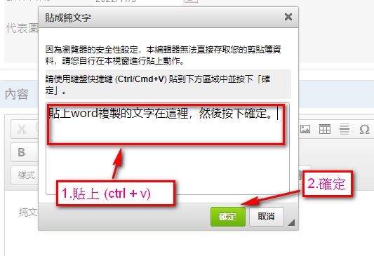 如果文字從網頁、word、excel複製,要貼上內容,您務必看此篇文章來操作。