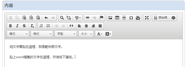 如果文字從網頁、word、excel複製,要貼上內容,您務必看此篇文章來操作。